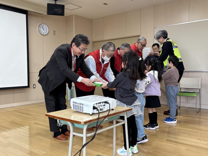 贈呈式では北警察署からのいかのおすしの犯罪講和があり、児童たちは楽しそうに参加していました。